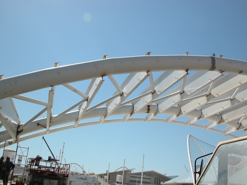 Stiffener plates were used in the arch tubes at the connections with the main beams and at the anchorage.